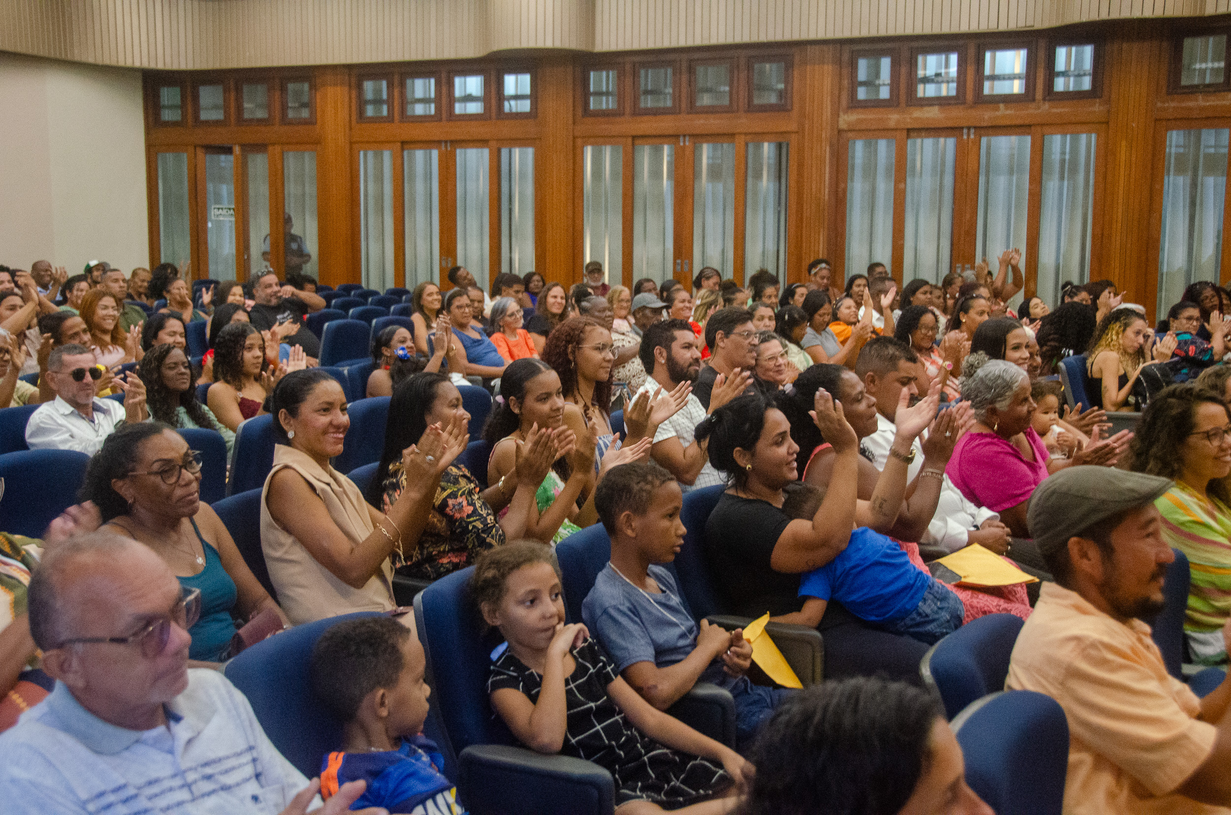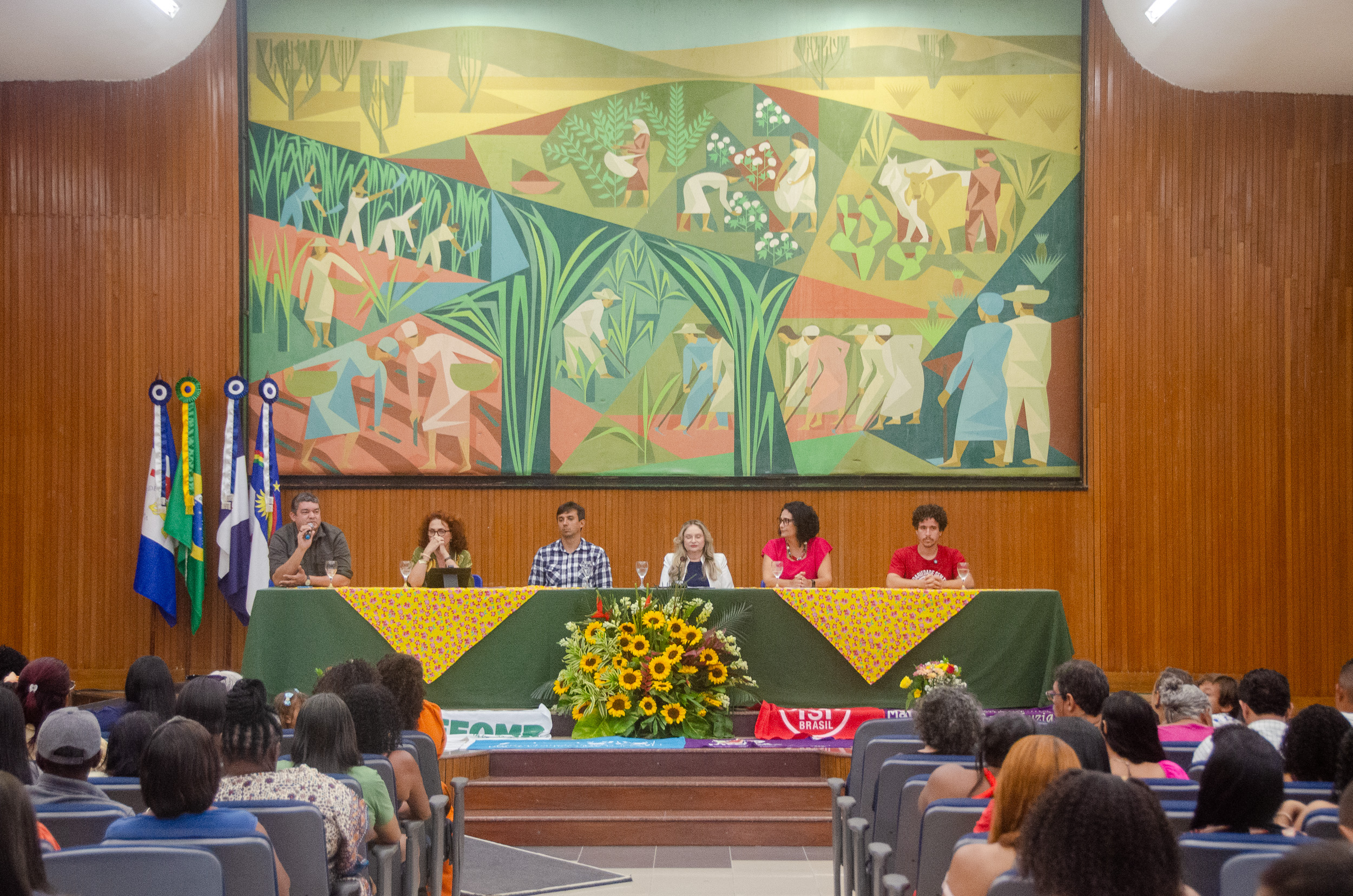 Na última quara-feira (17), 100 (cem) mulheres e homens de cinco comunidades do Grande Recife participaram de cerimônia de formatura no no curso da Escola Marias- Mulheres e Agriculturas Urbanas, encerrando o ciclo de formação do projeto realizado pelo Centro Sabiá. A celebração e ritos simbólicos aconteceram no Salão Nobre da Universidade Federal Rural de Pernambuco (UFRPE), com a presença de autoridades, como a vice reitora Maria do Socorro de Lima, a coordenadora Geral do Sabiá, Maria Cristina Aurelian, prof. José Nunes, docente da UFRPE, a diretora do Departamento de Promoção da Alimentação Adequada e Saudável do MDS, Patrícia Gentil e o coordenador Estadual do Movimento dos Trabalhadores e Trabalhadoras Sem Teto, MTST, Felipe Cavalcante.
